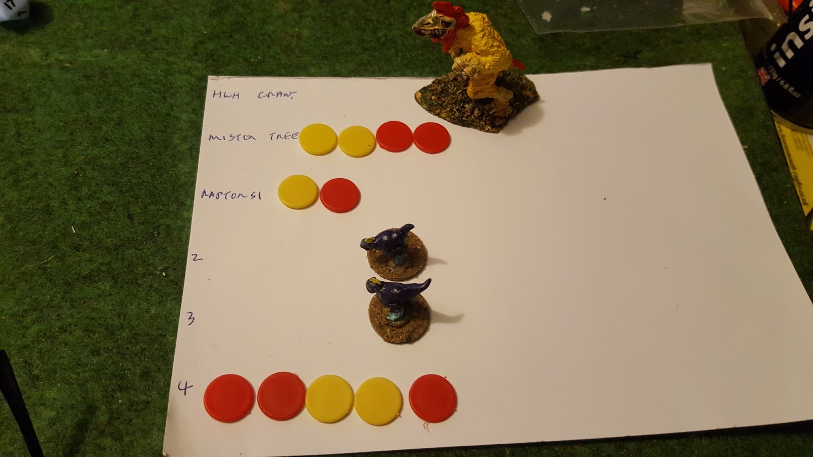 In comes a velocorooster. No matter how good your armour, there's weak spots and here is one - my chap is down and the first of many Out Of Action (OOA) results.