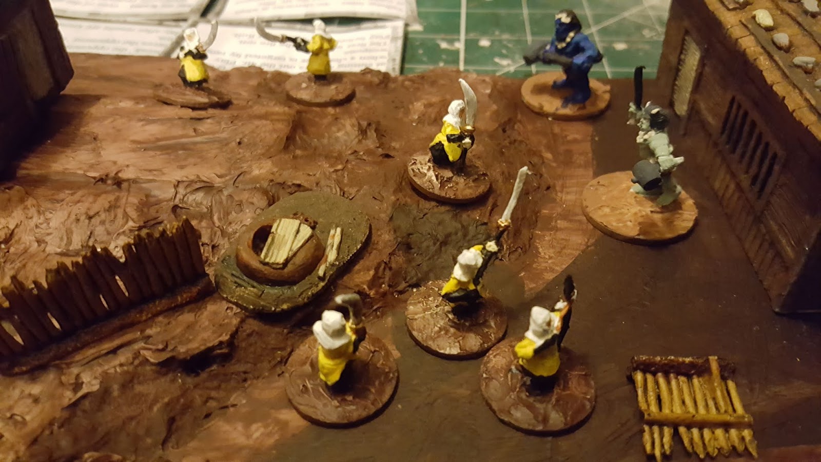 Not historical, but a definite "should have been".I decided to try a 1ft square tile. Last weeks was a little slow as troops started out of command radius. This has a nice selection of cover plus 3 entry points/sides.