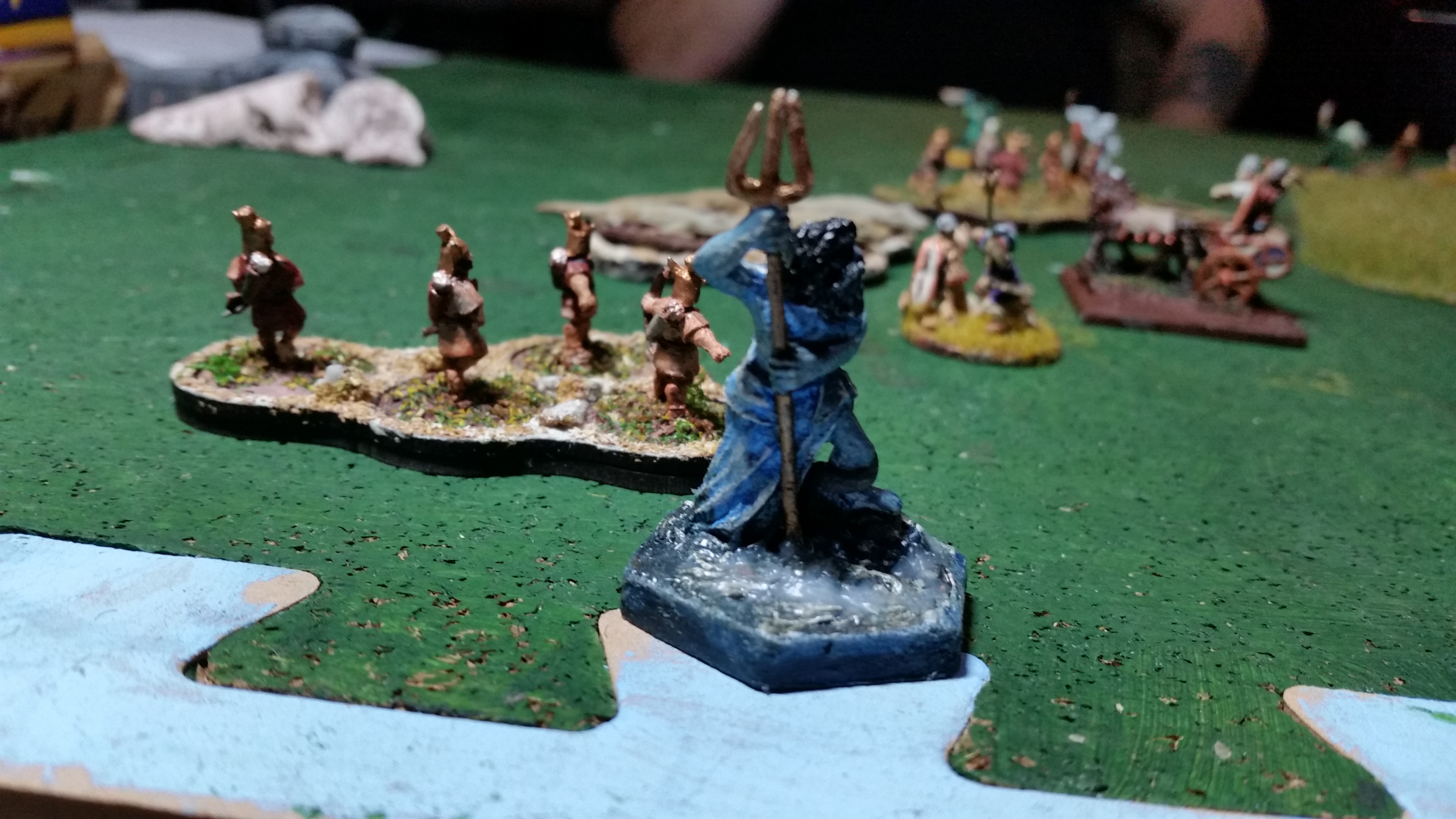 The Game. Totally interesting scenery. You roll for defender or attacker. Defender adds terrain. In this case me taking Poseidon.