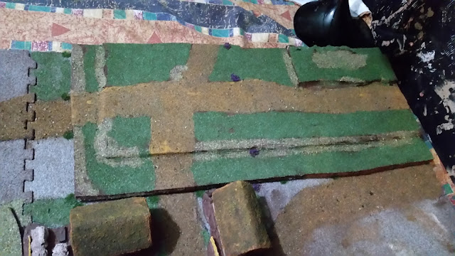 Tiles cut down, hill assembled from 1 tile & offcuts. Starting to plan. Latex roads, I toyed with using.