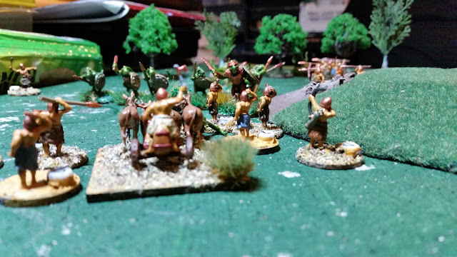 Here comes Trump-ton wading through and stirring the swamp. Pretention of the Gord runs up and with a "Waa! Ekki Ekki Thump!" lets loose with both weapons in a blinding display of ambidextrous skill. Well, it would be, but the dice say no and tripping on his robe he goes down in a heap. Fortunately Trump-ton misses--. (Twit, I should have used "brawling!)