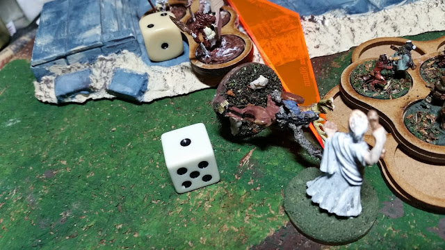 A tie. Amazons lose 1. Hermes can turn that into a push back if he makes a Q roll of 2+. A 1. He's dead! Cannot remember a game with both gods gone!