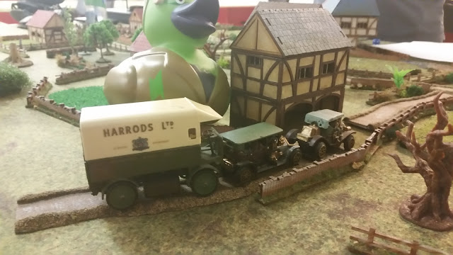 The Colonel climbs on top of the vehicle and his men form the first firing line all proper like.With the merry "chuff" of breaks the van screeches to a halt then the stalwarts advance!