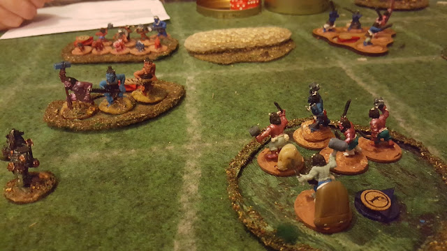 Expected this to be a suicide charge by my archers. They shoot and actually kill one! They fight. They need 6's and even those have a 50% chance of success-. But they do it. Only lose 4. Crom.